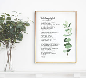 and I shall dwell in the house of the Lord forever." Psalm 23 ESV, a wonderful bible verse wall decoration for home, dorm, office and church! (Greenery Botanical design)